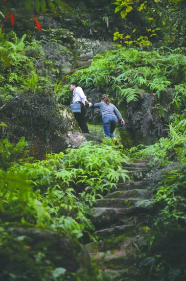 11月1日,结婚15年的夫妻钟先生和万女士,慕名来攀爬爱情天梯,悼念老人