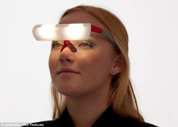 北京时间11月22日消息,据国外媒体报道,丹麦工程师发明了一款奇特的眼镜,名为“Seqinetic”,季节性情绪失调患者只需佩戴短短30分钟便可收到情绪改善的效果。这款眼镜售价54英镑(约合85美元),装有6个发光二极管(LED),可产生一个强大的光场,明亮的白光通过一个曲面反射器反射到眼镜。