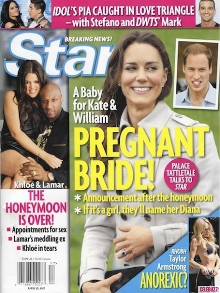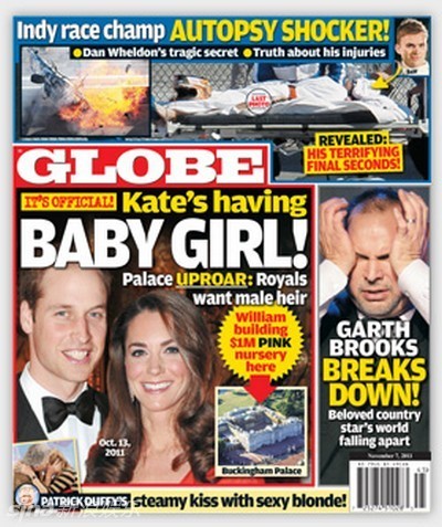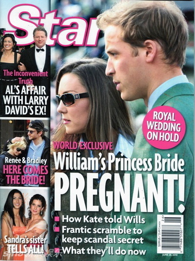 在现实生活中,凯特王妃(凯特-米德尔顿)仍未怀过孕,但在许多国外超市杂志封面上,凯特王妃已经“被怀孕”好多次了,看来王妃也颇受各界传媒“爱戴”呢。