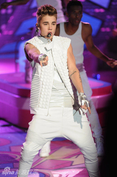 比伯白衣献唱内衣秀 偷瞄辣妹小鹿乱撞