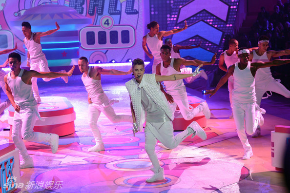 近日,人气正太贾斯汀-比伯献唱2012维多利亚的秘密内衣秀。一身白衣帅气亮相的比宝演唱新单,并不时偷看性感超模,小鹿乱撞