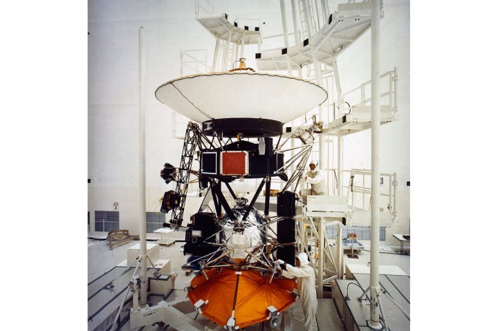 佛罗里达州卡纳维拉尔角的肯尼迪航天中心,技术人员正在测试旅行者号飞船的一个模型。1977年,两艘旅行者号飞船被送入太空,开始探索太阳系外围的行星。两艘飞船的工作都很成功,向地球传回了大量精美的图片,以及重要的科学数据。