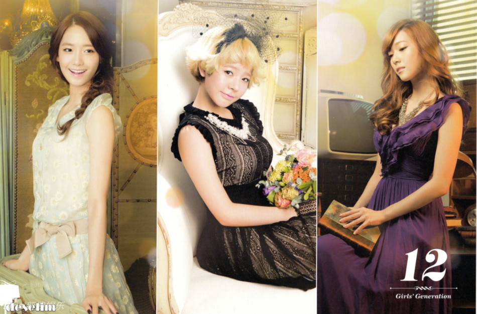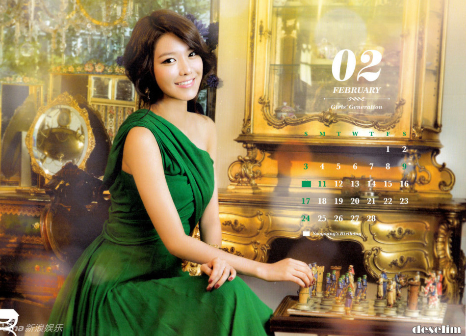 即将携新专辑回归的韩国组合少女时代2013全新年历曝光,九位成员着色彩鲜艳的各色礼服、面带甜美的微笑,展风格不同的九色美貌。