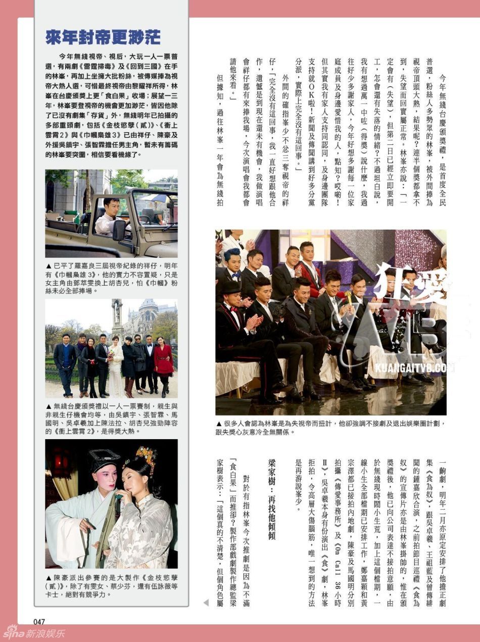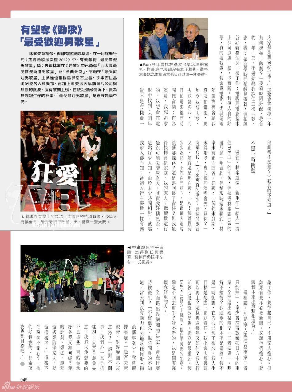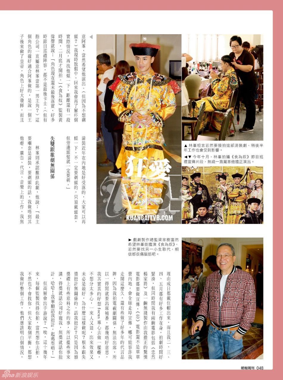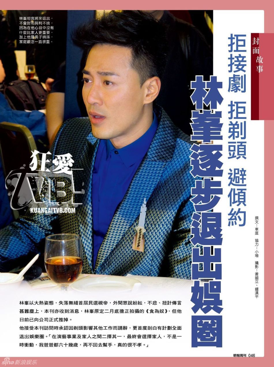 林峰接受《明报周刊》访问承认因剃头影响其他工作而辞掉《食为奴》,更首度剖白有计划全面退出娱乐圈。电影与电视只可以选一样,会选电影,并强调跟失奖无关。