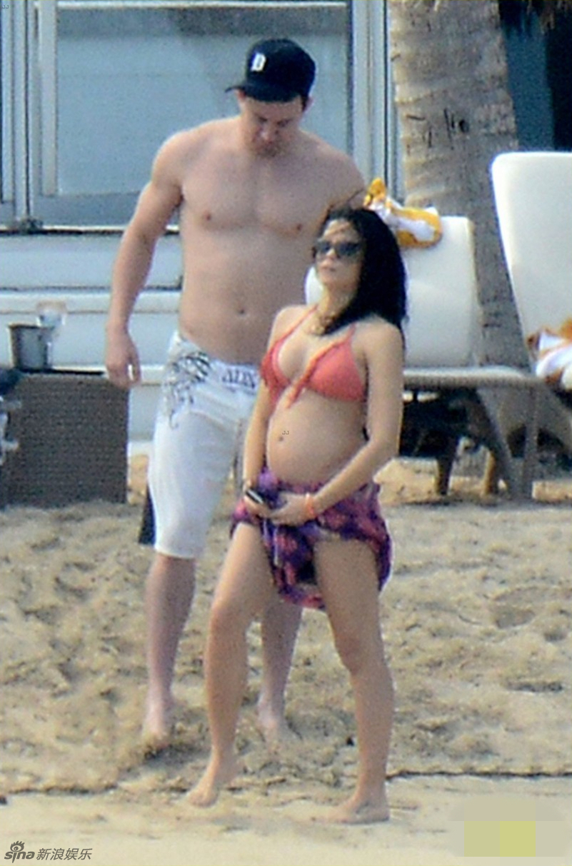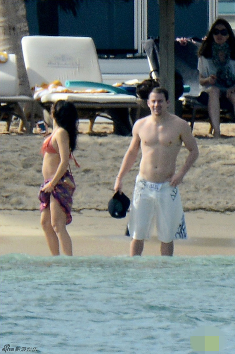 圣巴特斯岛当地时间12月28日,获评最性感男人的32岁钱宁-塔图姆裸上身展现好身材,与孕妻珍娜-迪万海滩恩爱戏水,迪万一身比基尼泳装大肚明显。