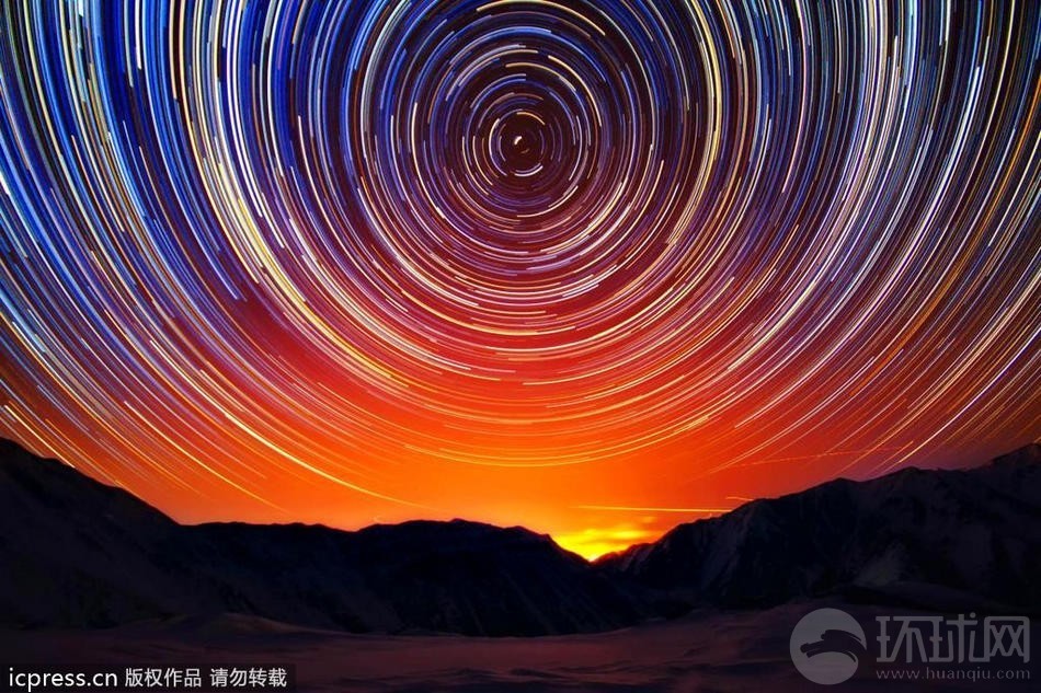 27岁的哈萨克青年Olga Kulakova在山顶上拍摄了一系列精彩的恒星轨迹照片,流光溢彩的画面仿佛夜空中的万花筒。一年前,Olga Kulakova在网上看到类似的图片,这激发出他的摄影兴趣,他很快就学会了这种图片的拍摄技巧