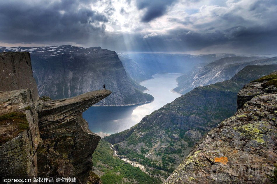 来自沃林顿的摄影师Jay Patel在前往挪威Trolltunga是抓拍到这个让人胆战心惊却十分壮观的场景,一名德国女性游客走向Trolltunga悬崖的边缘,高悬在3000英尺的高空。