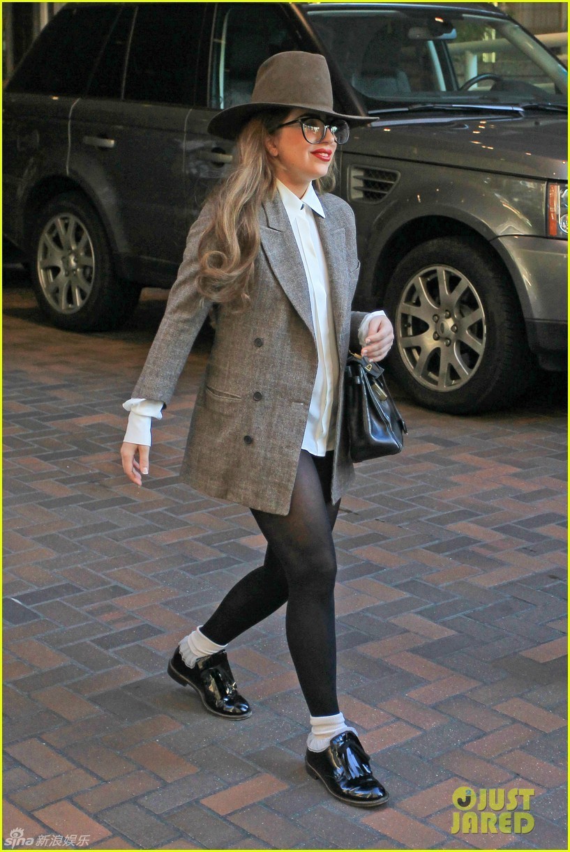 Lady gaga西服礼帽配黑丝 摩登又搞怪