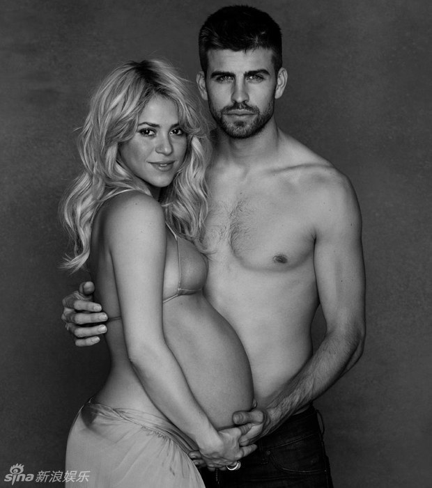 夏奇拉携男友半裸拍写真 挺大肚幸福洋溢(图)