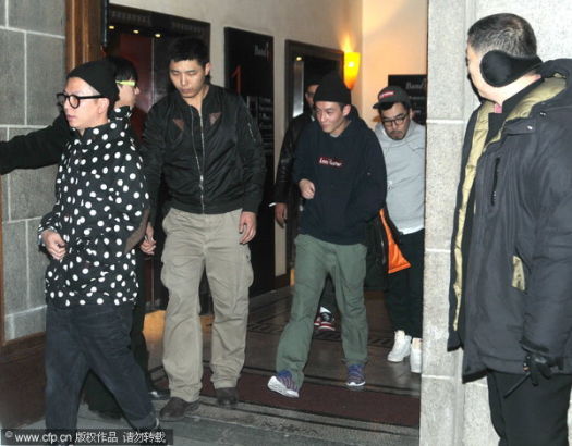 近日,陈冠希夜游上海,身边竟然多了几位外国友人。上海气温直逼零度,陈冠希戴了顶黑色毛线帽子,身着垮裤尽显潮男本色。一路上有说有笑,心情甚好,见镜头也只是一脸迷茫未有躲避。图库供稿
