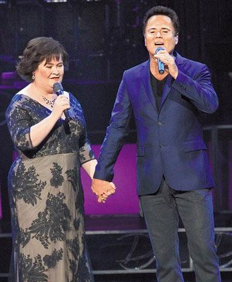 苏珊大妈2012年10月在拉斯维加斯和唐尼奥斯蒙同台,和他拥抱时神情娇羞,择偶条件也几乎就是他的写照。她开出如此明确条件,希望早日遇见梦中情人。
