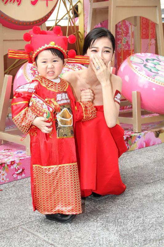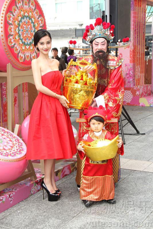 Baby今日特意以一袭红色长裙亮相,象征在新的一年红红火火。现场特别设置响鼓长廊,寓意鼓声高昂迎接新春,Angelababy兴致高涨现场即兴打鼓,祈求在新一年能带来好运。见到扮成小财神的小孩十分可爱,Angelababy忍不住逗弄他,谁知小孩却总是不笑,Angelababy担心说,“是不是活动现场人太多吓到小朋友?”与小孩子的家长一问才知,原来小孩已经很努力的在笑了。小孩鬼马的表现逗得Baby哈哈大笑。这样意外的小插曲也让现场的众人笑作一团,充满过年的喜庆和欢乐气氛。