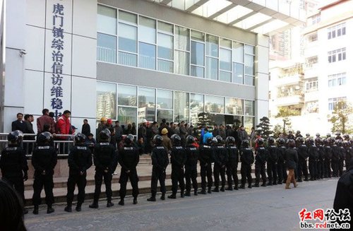 讨薪过程中,当地政府调来大量特警维持秩序。