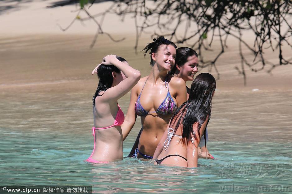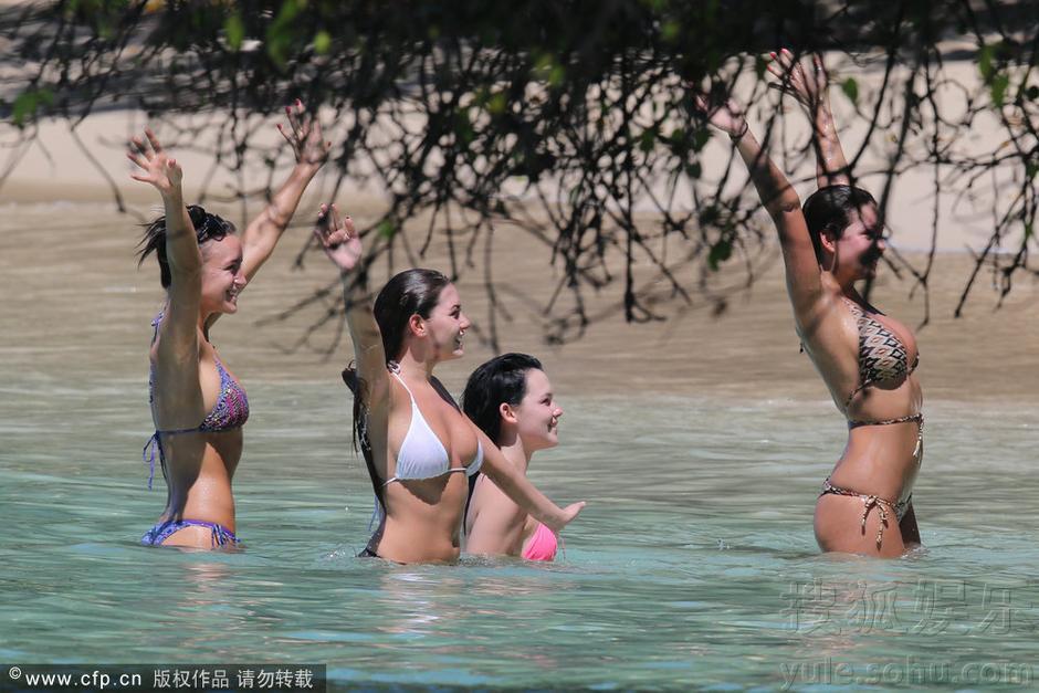 当地时间2月6日,众艳星齐聚加勒比海滩裸泳嬉戏。英国嫩模梅丽莎、艳星罗茜-琼斯 (Ronie Jonen)、霍利-皮尔斯、脱维亚篮球宝贝nabine Jemeljanova等女星玩裸泳,画面香艳十足