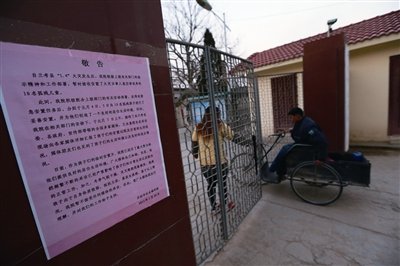 开封市福利院大门外,贴出了谢绝探访的通告,这里安置了袁厉害曾收养的10名孤残儿童