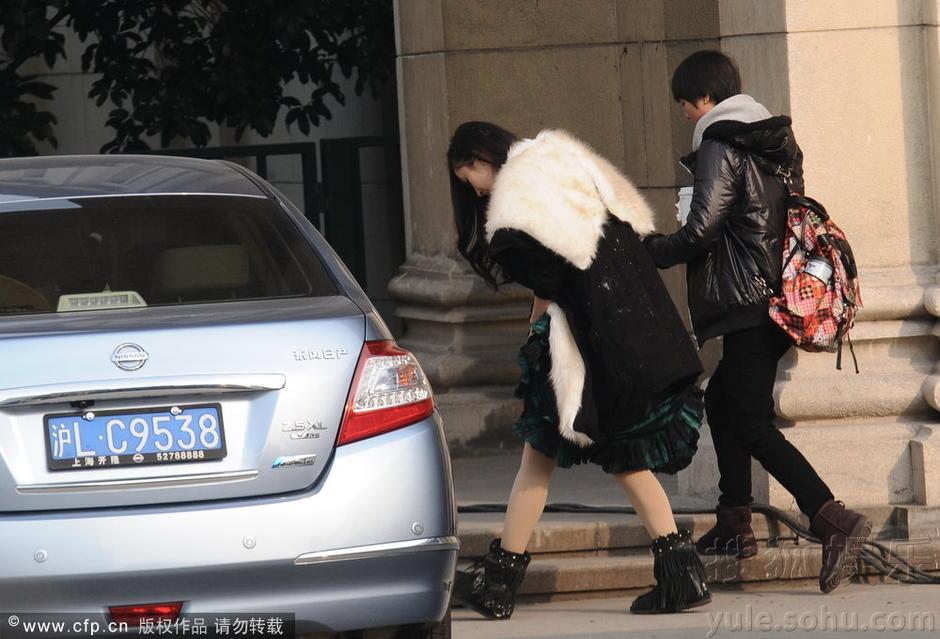 2013年02月19日讯,上海,日前杨幂现身上海展览中心。喝完星巴克后,助理陪着杨幂上洗手间。洗手间出来,没喝完的咖啡由助理拿着,杨幂不知与助理说着什么皱紧眉头,可能是身后有一名中年男子紧跟,显出一副不高兴的样子。自己撩起裙摆时,里面内衬短裤也不慎外露。