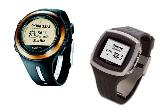Direct订阅服务接收无线新闻和天气信息的智能手表,可通过某些大城市的FM无线电频段传输信息。图片左边是颂拓n3,右边是Fossil