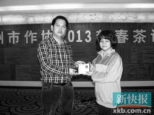 昨日上午,每年一度的市作协新春茶话会,为新一批的作协会员颁发证书。杨琲儿不到1.5米的小个子,一头蓬松短发,身着南国中学校服,站在主席台上,有点“突兀”。她2000年9月出生,自6岁开始发表作品,通过网络她已经发表了两部10万余字的长篇魔幻小说《迷迷眼的生活日记》和《伊布的成长故事》,在报刊杂志上发表短篇小说或散文。