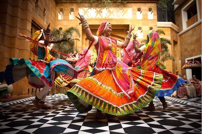 在默罕迪仪式,即一项婚前仪式上,拉贾斯坦邦民间舞者起舞。在这一仪式中,新娘的手脚都会被装饰上指甲花纹身。在这组图片中,Sephi