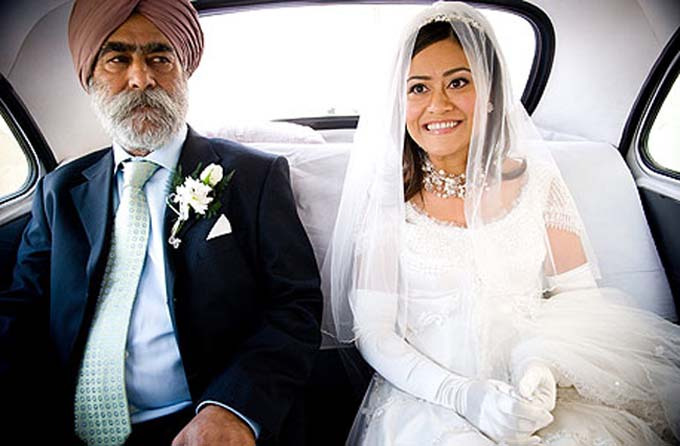一位锡克教徒的父亲和他的基督徒女儿一起前往女儿婚礼的举办地点。