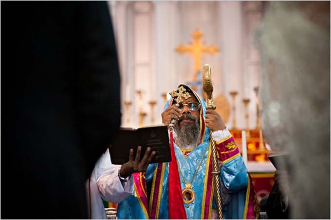 一位叙利亚基督教牧师在喀拉拉帮举办婚礼。叙利亚基督徒的婚礼集基督教、印度教和南印度当地婚俗特色为一体。