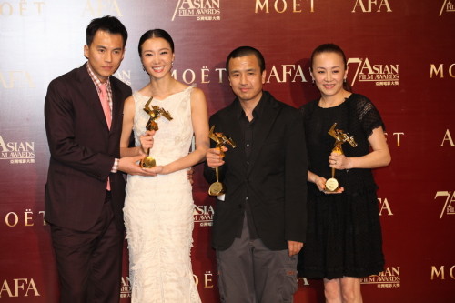 3月18日晚,第七届亚洲电影大奖在湾仔会展中心举行颁奖典礼。娄烨[微博]的《浮城迷事》荣获最佳电影、最佳新人、最佳编剧三大奖项,成为当晚的最大赢家,此次也是华语片首次摘得最佳影片的桂冠。徐峥[微博]的导演处女作《泰囧》则获得最高票房奖。娄烨在接受采访时感触这部影片曾碰到很多麻烦,得奖对整个摄制团队有很大意义,他也表示不希望以后有更多的麻烦,望各方面能够配合,让电影环境更好。