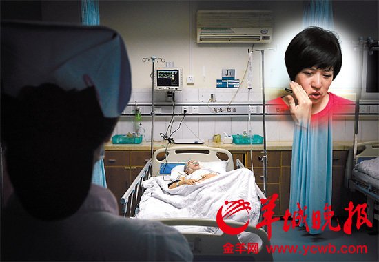 被砍城管队员苏家权手术后被送入看护病房,护士在一旁看护 羊城晚报记者 艾修煜 摄 (小图:苏家权的姐姐闻讯赶来,哭得精疲力竭)