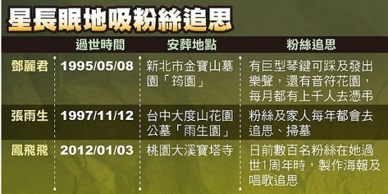 张雨生车祸过世15年多,每年他的忌日11月12日都有数百名粉丝去他的墓园“雨生园”凭吊,他溺水过世的妹妹、前年胃癌过世的爸爸也同葬于此,因此张妈妈每年清明节都会与儿女去扫墓,不过若是大度山花园公墓在下周三前没有缴616万7575元的地价税,雨生园等近3千个墓园将面临查封命运。