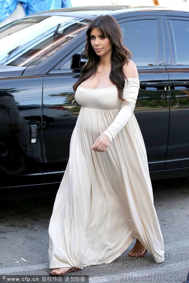 金-卡戴珊挺大肚身材大变样 穿爆乳孕装秀深沟(图)