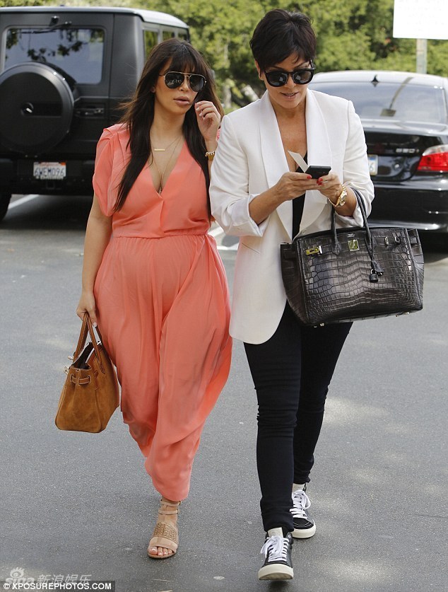 怀孕以来一直高调的金-卡戴珊虽然备受抨击,但上周日与母亲出街,她仍然穿粉红色透视连衣裙,双峰袭人臀部浑圆,同样气势磅礴。
