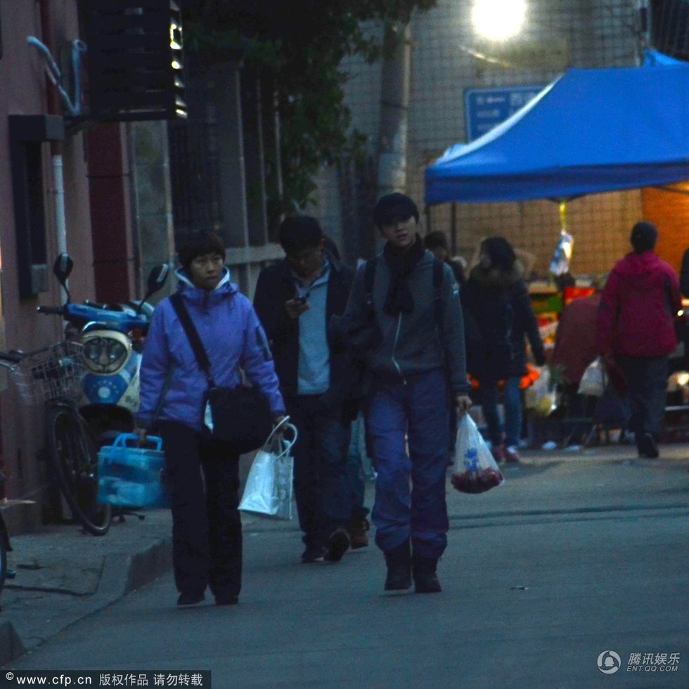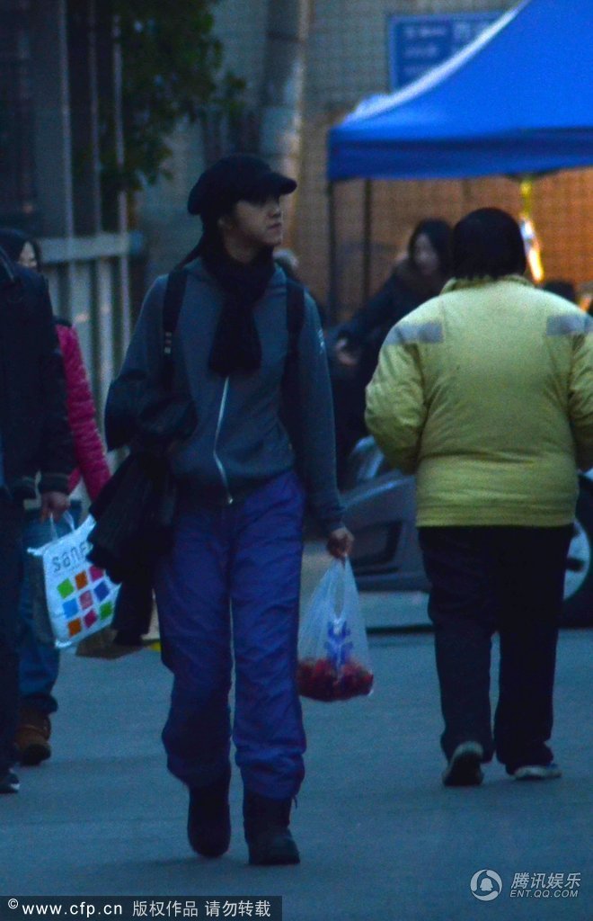 日前,汤唯结束新片当天的拍摄工作,换完衣,与助理一起在片场附近的菜场闲逛。