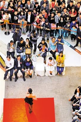 龙岗某商场,时尚珠宝秀吸引着众多市民的目光。