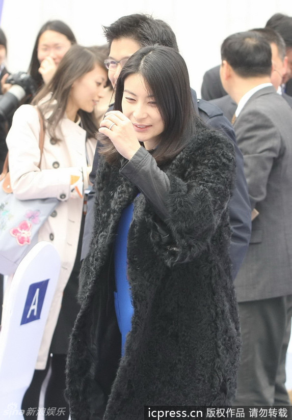 » 郭晶晶大衣遮肚显孕象 与霍启刚亲密亮相(组图)