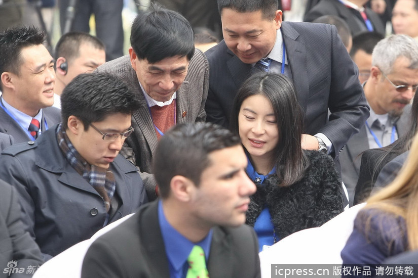 2013年4月21日,萨马兰奇纪念馆在天津开馆,霍震霆携霍启刚和郭晶晶到场,霍启刚和郭晶晶分别入场,郭晶晶穿宽松大衣,怀孕迹象明显。IC/图