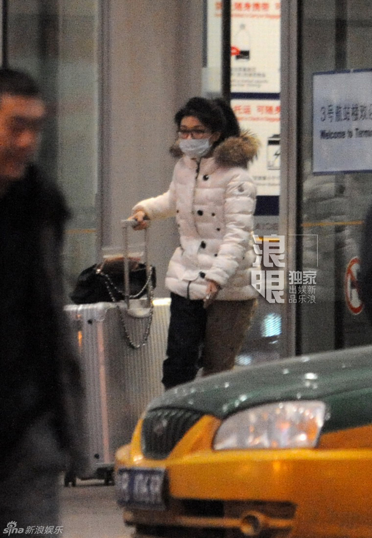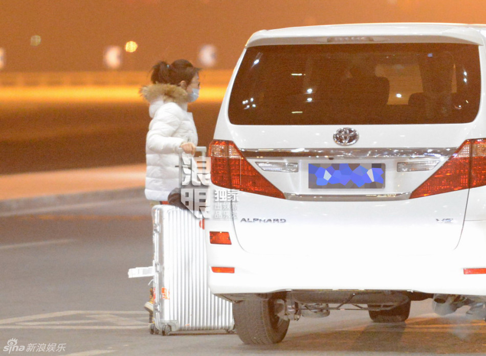 丁丁素颜戴口罩深夜独自回京