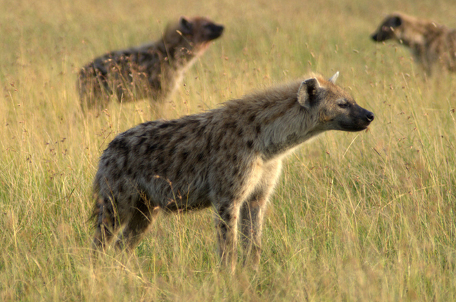 斑点鬣狗几乎什么多能吃。它们强大的颌能咬碎骨头,它们一顿能吃是自身体重三分之一的肉食。不管是新鲜肉,还是腐烂变质的尸体,它们来者不拒。鬣狗吃了感染碳蛆热病毒的死牛后,并未受到任何影响。然而,即使是这种超级强胃,也有终极弱点:鬣狗不能消化毛发、蹄子和动物犄角。