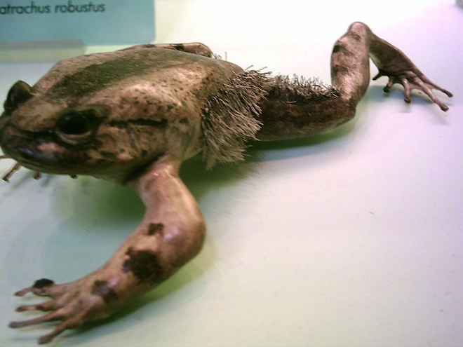 毛蛙(骨折蛙):受到威胁时,毛蛙会折断自己的骨头,并从皮肤里伸出来,形成爪子。这有点类似金刚狼,但是二者又不完全相像。