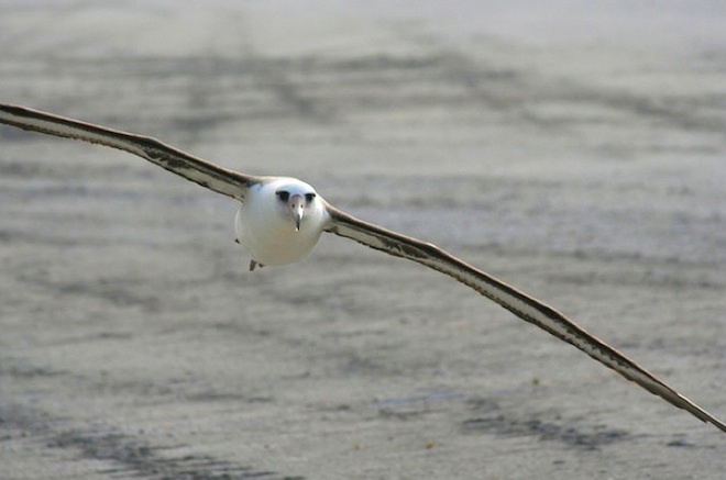 黑背信天翁:一辆制造精良的汽车能行驶几万英里。对黑背信天翁来说,这只是它们一年的飞行距离。它们在中太平洋筑巢,到南美觅食,每年可飞行8万公里。1956年跟踪的一只 中途岛环礁信天翁(被认为是世界上最古老的鸟),整个一生飞行了321.万到482万公里