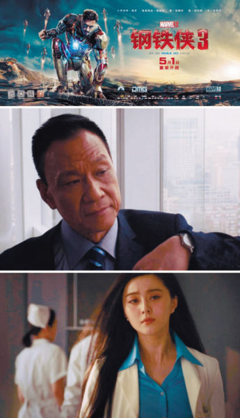 5月1日,好莱坞超级英雄片《钢铁侠3》在中国内地上映,首日即席卷1.3亿元票房,更创下4项内地影史票房纪录。主演小罗伯特·唐尼的人气、影片超强的视觉冲击力、逼真的3D效果自然是赢得影迷青睐的原因,但影片之所以火爆到破票房纪录的程度,“中美合拍”、“范冰冰、王学圻参演”也是重要因素。不过看完影片,许多影迷纷纷吐槽,称宣传中的中国元素相当突兀,与主线毫无关联,以至于上映次日,央视微博也吐槽道,片中的两位中国演员像“走错剧组”。