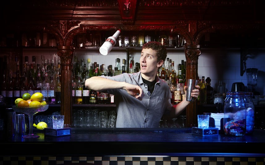 2011年1月25日,英国伦敦的调酒师Tom Dyer在鸡尾酒调酒表演中,使酒瓶连续撞击肘部达29次。