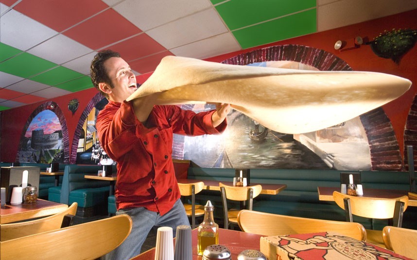 2006年4月,在美国明尼苏达州明尼阿波利斯市的美国购物中心内,Tony Gemignani在30秒内使567克的披萨面团滚过了自己的肩膀。
