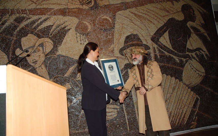 2011年12月12日,在阿尔巴尼亚地拉那的Rogner Europa Park酒店,阿尔巴尼亚人Saimir Strati制作出了最大的咖啡豆马赛克镶嵌画,面积达25.18平方米。