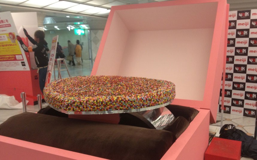 2012年2月10日,在日本大阪市的难波城,展出了世界上最大的彩色巧克力糖雕像,重量为267.4公斤,高18厘米,长1.54米,厚度为1.24米。