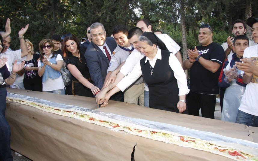 2011年5月22日,在黎巴嫩贝鲁特的Hazmieh村庄内,由三个团队合作完成了这个世界上最长的三明治,长度达到735米。