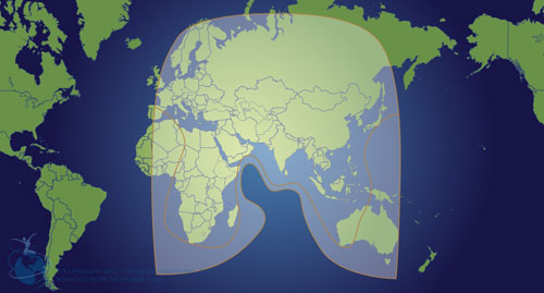 亚太七号是法国为亚太公司制造的通讯卫星。图为亚太七号的覆盖区域。(资料图)