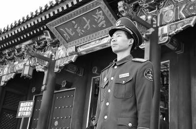 “每当我执勤站岗的时候,我的角色就是扮好北大的一名普通保安。站在北大的校门口,每天面对成千上万的人,不管是穷人还是富人,不管是骑自行车的还是开宝马的,当他们从我身边经过的时候,我都一律向他们敬礼。”