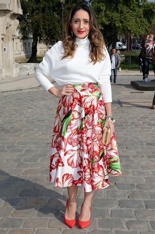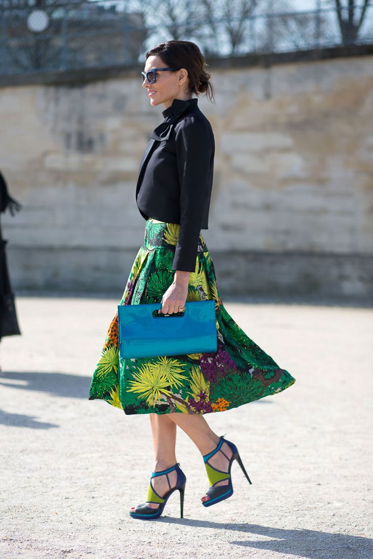 ▼印花的半身裙更是适合职场,随便一件剪裁简单的上衣就 OK