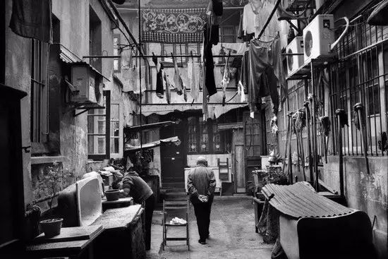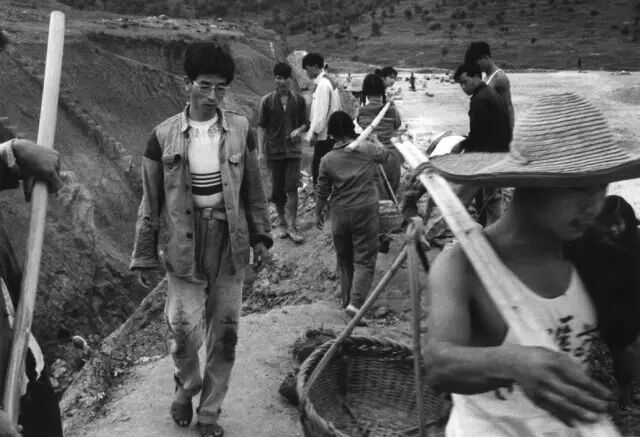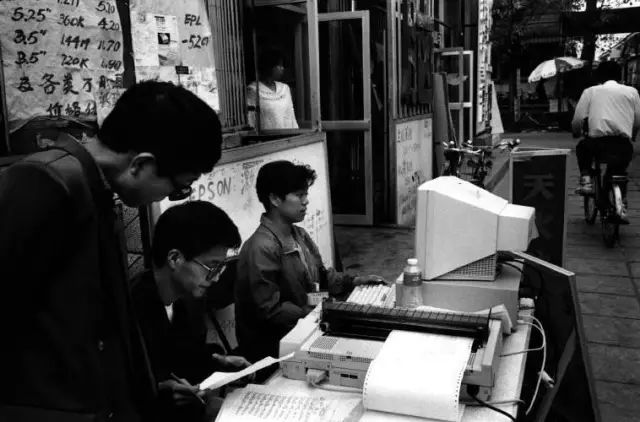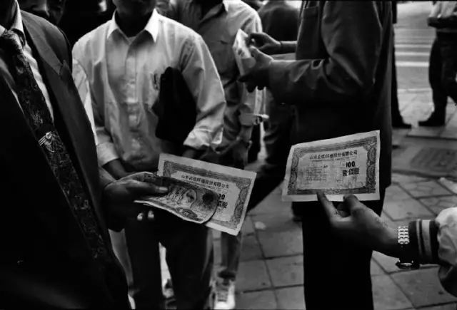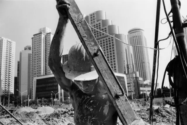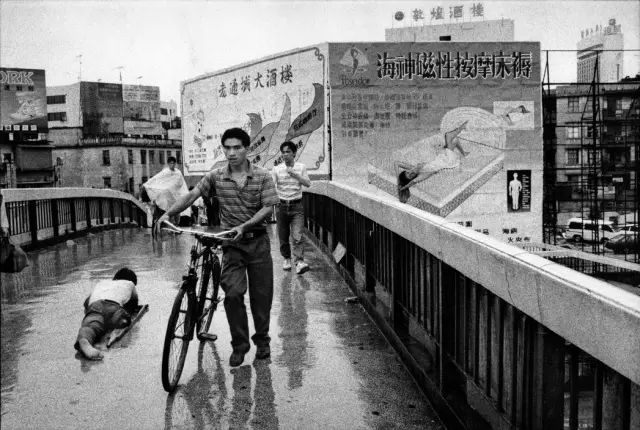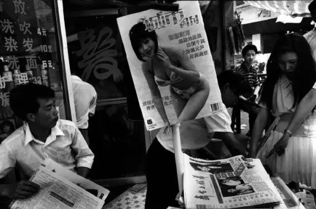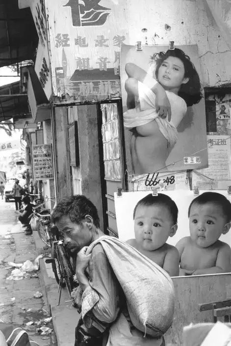 上海的清晨,尚未找到工作的进城务工者,不远处的广场山,上海市民们正在跳舞,1993
