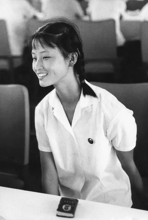 上海芭蕾舞团的芭蕾舞者,在她前方的桌子上放着红宝书,1971