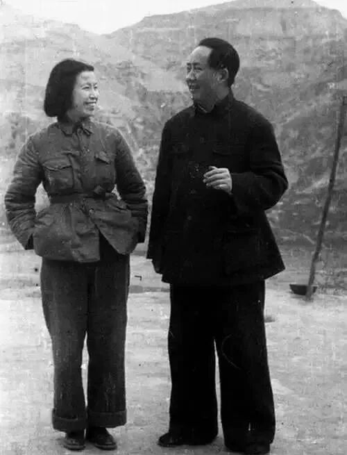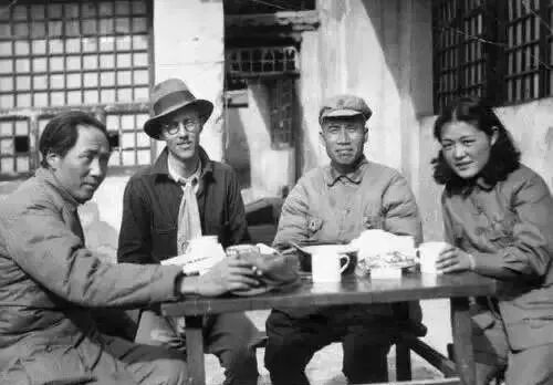 1937年,吴莉莉(右)与毛泽东、李德、朱德交谈。
